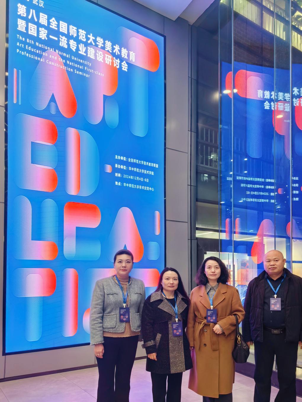12月5日上午,william威廉英国官网经理黄新霞、副经理石永松、教学科研办公室主任周俊炜、美术教研室主任淳敏参加了在华中师范大学举办的第八届全国师范大学美术教育暨国家一流专业建设研讨会。此次研讨会吸引了众多师范院校的专家学者齐聚一堂,全国40余所师范院校的120余名专家学者共同探讨师范院校美术教育的新理念与新方向,为促进美术教育人才培养模式的改革与创新汇聚各方智慧。