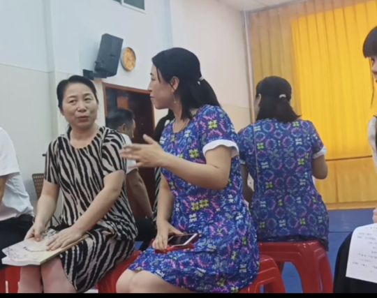 在看完剧团成员表演后,带队老师高世云与陈艳琼副团长交流地方戏曲山二黄演唱与美声,民族演唱的方法差异及其共融性。