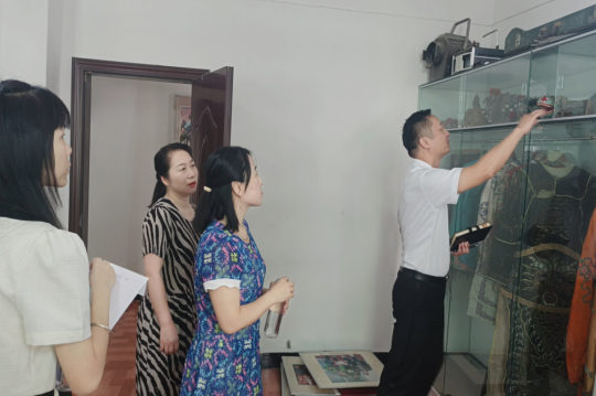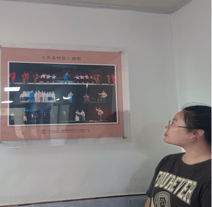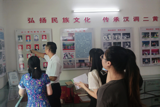 接着,三位团长带领小分队成员参观了山二黄艺术陈列室,里面包括一些古老的服装,头饰,字幕机等等。