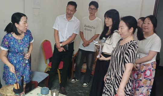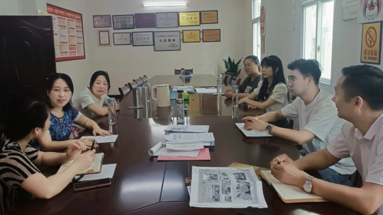 7月10日,首先,小分队和山二黄剧团的三位团长在剧团的会议室进行了交流探讨。带队老师高世云介绍了此行的目的,希望山二黄剧能够在高校中得到推广,诚挚地邀请山二黄代表性传人黄彩平及剧团来校进行讲学与演出,让更多的员工能够了解和熟悉山二黄剧。三位团长对此表示十分地赞同与支持,并且也希望山二黄剧能够得到传承与推广,大家交流得十分融洽。