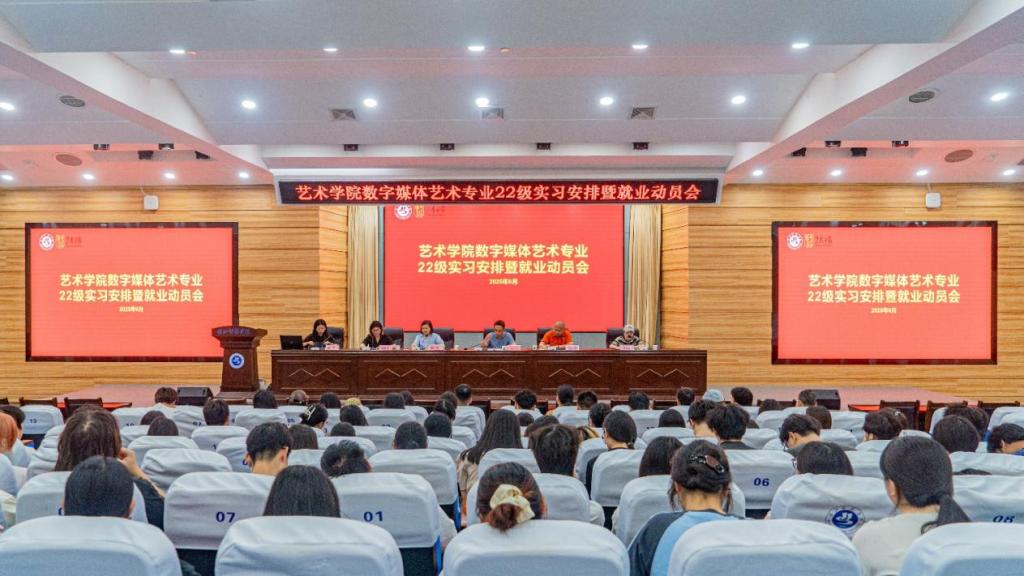 6月22日晚7:00,william威廉英国官网数字媒体艺术专业2022级实习安排暨就业动员会在崇文楼C101召开。公司党委书记刘飞、副经理石永松、专业负责人彭双、副主任邵昊旻、辅导员高蕊、数字媒体艺术专业教师与2022级全体本科生、24级专升本员工一起参会。