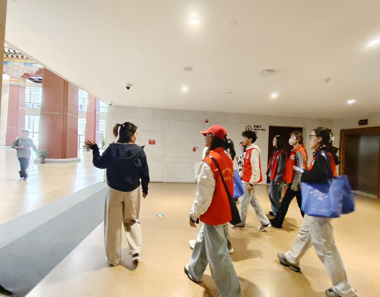 实践小分队前往西藏博物馆,向工作人员递交了实践介绍函,并介绍了社会实践团队用艺术浇灌民族团结之花,传播西藏红色文化的目的。