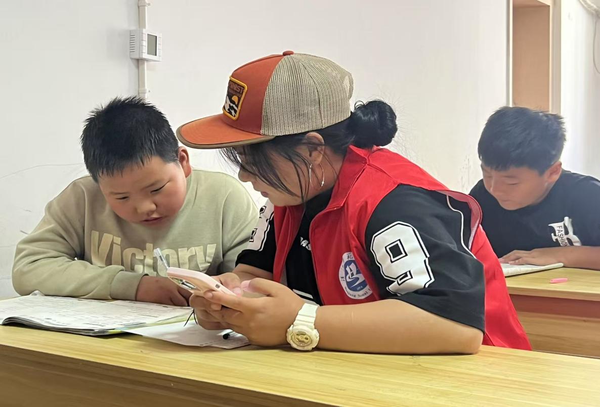 课业辅导解难题,耐心解惑助成长。针对当地农牧民留守儿童在学习中遇到的困难,尤其是汉藏语言转换及数学等学科的理解难题,支教队员开展一对一精准辅导。志愿者们通过耐心讲解和趣味互动,帮助孩子们辨析易错知识点、理顺解题思路,有效巩固学科基础,提升学习信心。