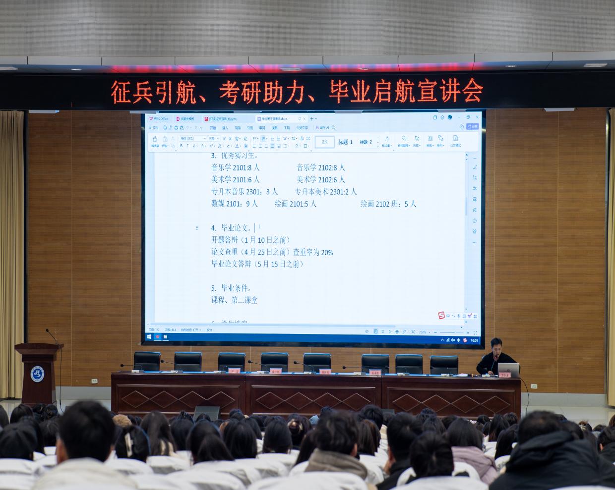 会议期间,2021 级毕业班辅导员郑冉老师紧密结合同学们日常关注的焦点问题以及后续重点工作,展开了深入且细致的讲解,主要聚焦于四个核心方面。首先,针对实习手册及实习鉴定表的填写,郑老师详细告知同学们规范且详尽的填写方法,强调精准记录实践经历的重要性,以便全面展现每位同学的实习成果与成长轨迹。其次,在毕业论文板块,郑老师深入剖析了毕业论文的各个阶段性任务,从选题到撰写,再到最终定稿,为同学们理清了论文写作的时间节点,助力他们有条不紊地推进毕业论文的创作,提升写作质量与效率。再者,郑老师着重强调了毕业所需满足的各项条件,将课程要求、第二课堂积分标准等逐一阐释清楚,使同学们对毕业门槛有了更为明确且清晰的认知,避免因信息不明而影响毕业进程。最后,郑老师深刻阐述了就业的重要意义,指出就业不仅是个人职业规划的起始点,更是实现自我价值与社会价值的重要途径,鼓励同学们积极展望未来职业生涯,充分珍惜在校的剩余时光,提前为即将面临的职场挑战积蓄力量,做好全方位的准备。