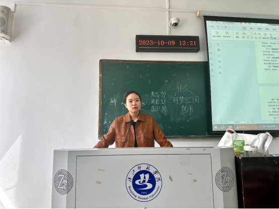 首先是分团委副书记毛欣怡发言,分团委副书记熊凯协助演示PPT。她详细的强调了分团委的纪律要求,首先是积极向上,其次是关于工作态度,分团委的考察干部们应当注意好自己的言论举止,积极参与平时的活动。这两点是至关重要的,她激励分团委的各位考察干部们,要坚定信念,持之以恒,不断做优分团委各项工作,使其在阳光下熠熠生辉。