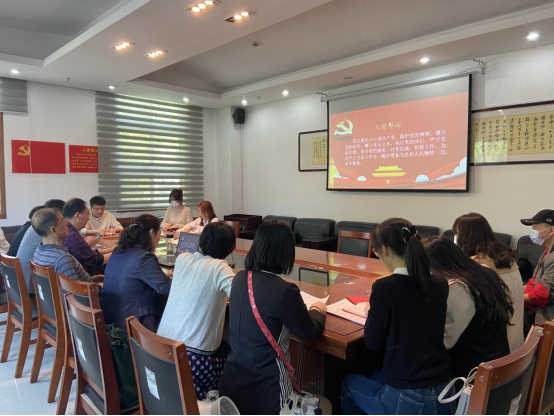 随后,公司党员师生在美术馆会议室举行了5月份主题党日活动。分党委书记成传明同志以党的二十大精神为主题为党员师生讲党课。