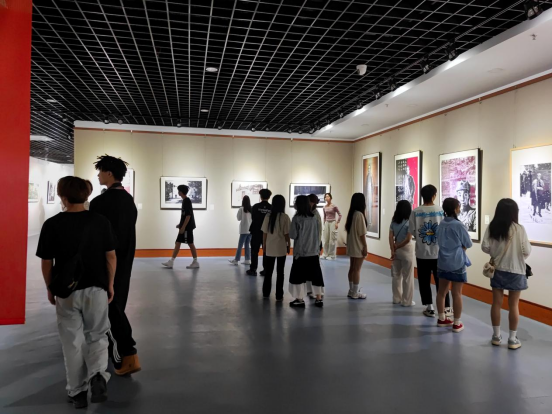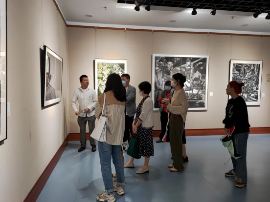 参观作品展的过程中,经理黄新霞、版画老师朱骏帅分别给师生们介绍了展览中的经典作品,其中对作品的创作技法、创作历史背景内涵等进行了解说及探讨,师生们受益匪浅。