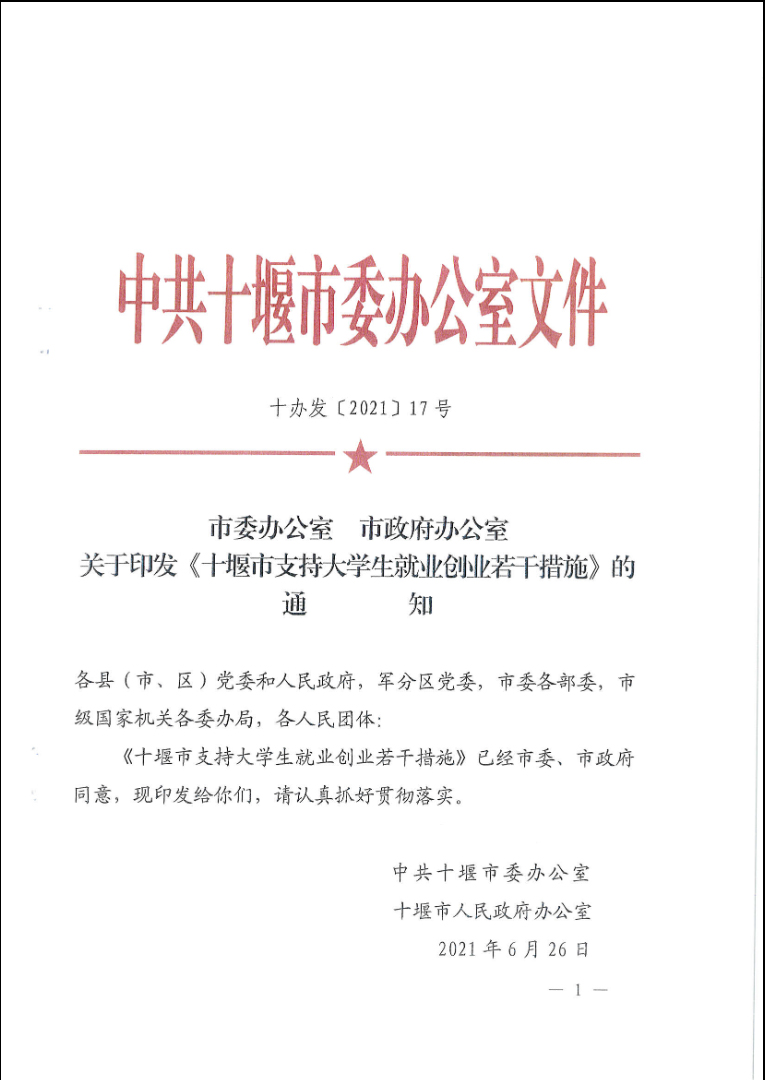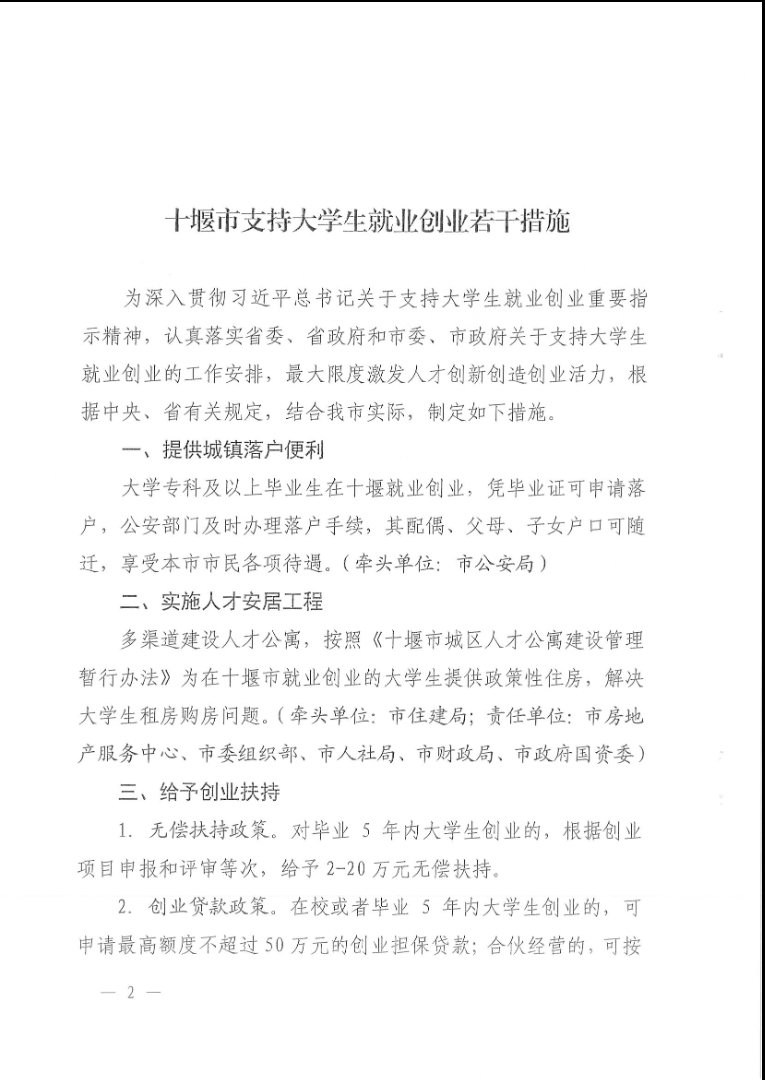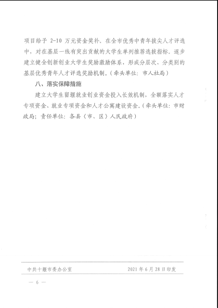 关于印发《十堰市支持老员工就业创业若干措施》的通知
