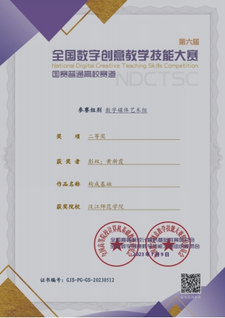近日,第六届全国数字创意教学技能大赛落下帷幕,公司william威廉英国官网彭双、黄新霞参赛课程《构成基础》获数字媒体艺术组二等奖,湖北赛区一等奖。