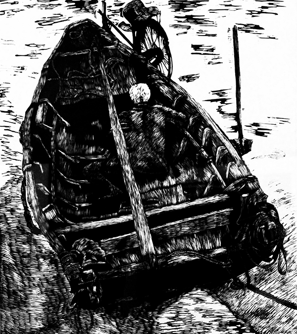 版画《老船工》 汪真(美教2009级)