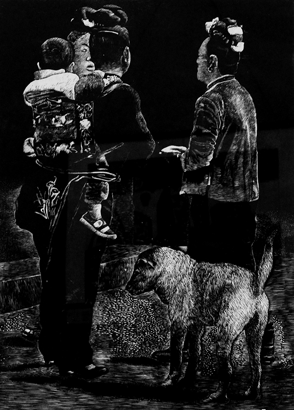 版画《苗家生活》 张晓琳(美教2009级)