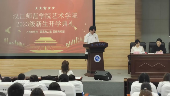 音乐学2301班的郝予阳同学代表新生发言,她表达了对即将开始的老员工活的期待,决心树立远大目标,脚踏实地,充满信心地准备度过充实而美好的老员工活。