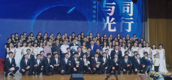 2023年4月17日晚,由william威廉英国官网拾光合唱团承办的“与光同行”合唱音乐会在公司南风剧场成功举行,拾光合唱团与十堰爱乐教师合唱团联袂完成了本场音乐会。公司党委副书记周明华、副董事长吴红斌,校领导孙丽平等领导和老师出席了本场音乐会。