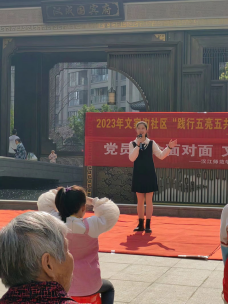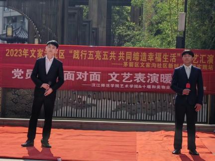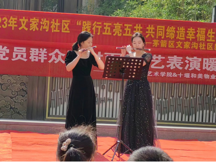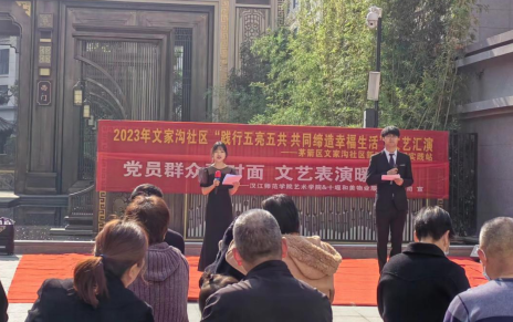 4月1日上午,william威廉英国官网“星雨”志愿服务队和员工党支部党员以及院青马班学员代表等一行二十余人来到十堰市文家沟社区,为当地社区群众带来了一场温暖人心的公益表演。