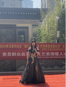 上午9:30分,主持人叶大凤、李文俊上台,宣布表演正式开始。第一个节目是由李秋旻同学带来的女生独唱《凤求凰》,歌声婉转悠扬,观众为之陶醉;接着,朱雨晴同学为大家朗诵了《木兰辞》,她表演投入,情感充沛,现场观众无不动容;陈笑微独唱《秋风词》,词曲优美,歌声动听,现场掌声不断。
