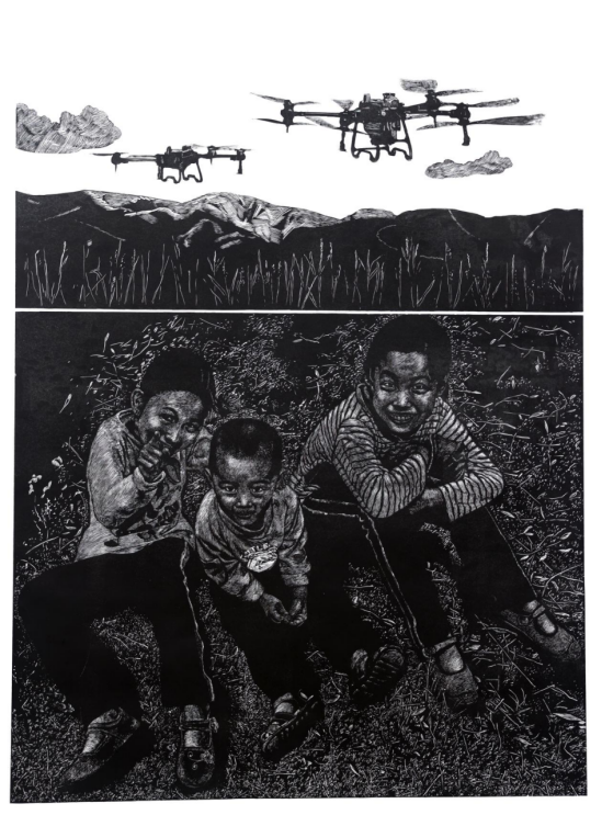 《天空的景致》黄新霞(版画)