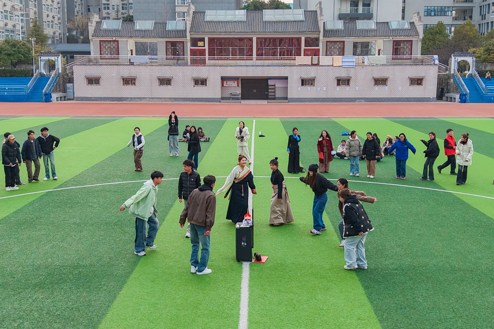 活动高潮是集体跳锅庄舞。师生移步户外运动场,在藏语民歌《吉祥酒歌》悠扬旋律的伴奏下,携手共跳欢快锅庄舞。大家手拉手、心连心,现场气氛热烈非凡。