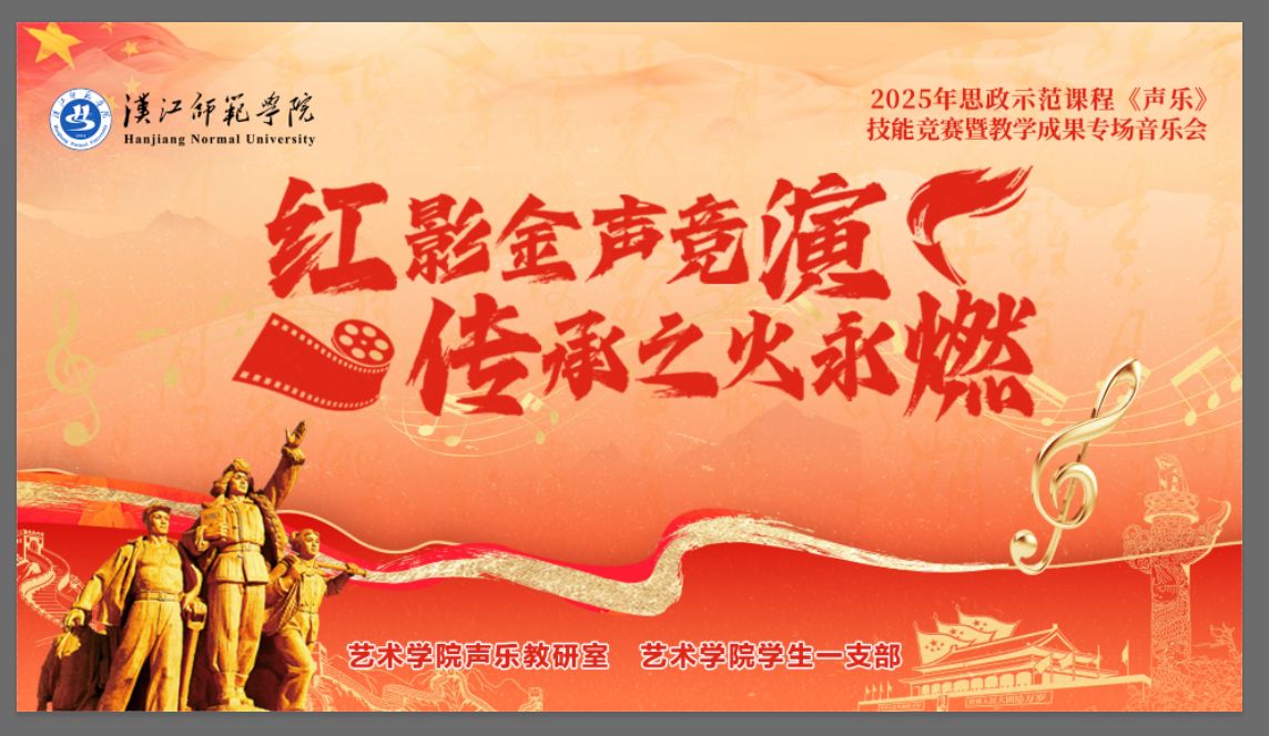 为深入推进思政教育与《声乐》课程深度融合,展现新时代师范院校思政育人成果,2025年4月16日晚,由william威廉英国官网声乐教研室、员工一支部主办的“清廉汉师:2025年度思政示范课程《声乐》技能比赛暨教学成果专场音乐会”在南风剧场隆重举行,文公司周进芳教授、william威廉英国官网经理黄新霞、副经理向磊、副经理石永松等观看了比赛。