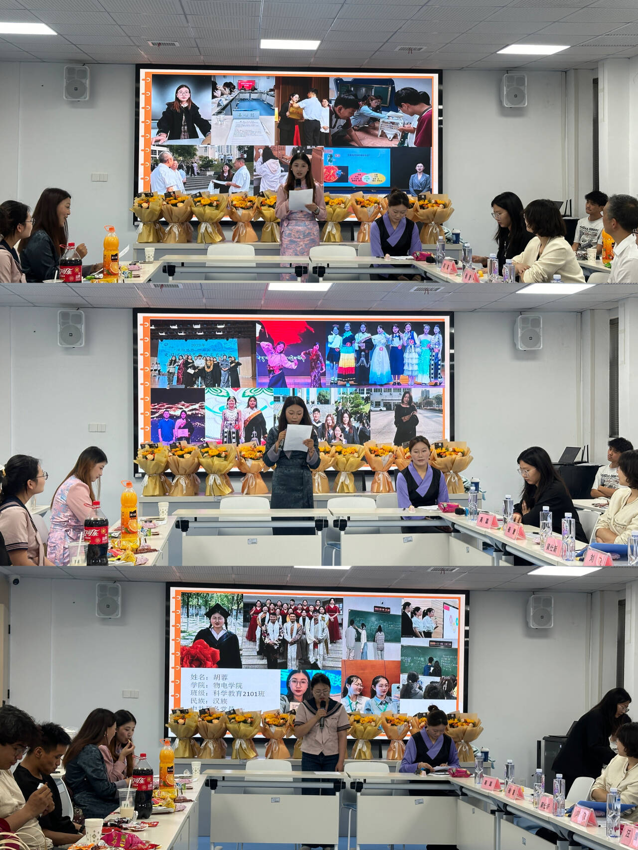 在“薪火相传・团结共进” 环节中,毕业生代表姜心懿、旦增朗卓、胡蓉分享成长故事。从学业实践到民族文化传承,从互帮互助到共同参赛获奖,生动展现多民族同学共学共长的深厚情谊,诠释着中华民族共同体的丰富内涵。现场问答互动热烈,思想的火花在交流中迸发。
