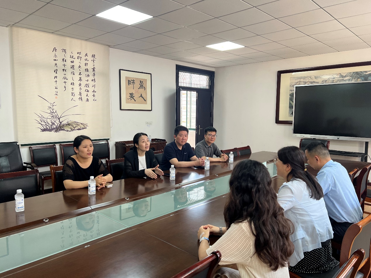 在鄂州市明塘小学,黄经理一行同该公司党支部副书记尹稚芬、教师发展中心主任姚国军及汉师william威廉英国官网毕业生陈懿然展开深入交流。尹稚芬高度评价了陈懿然的职业素养,称其从参与校园文化展布置到牵头组建员工艺术社团,她都展现出扎实的专业功底与强烈的责任担当,是思想觉悟高、工作能力强的青年教师代表。