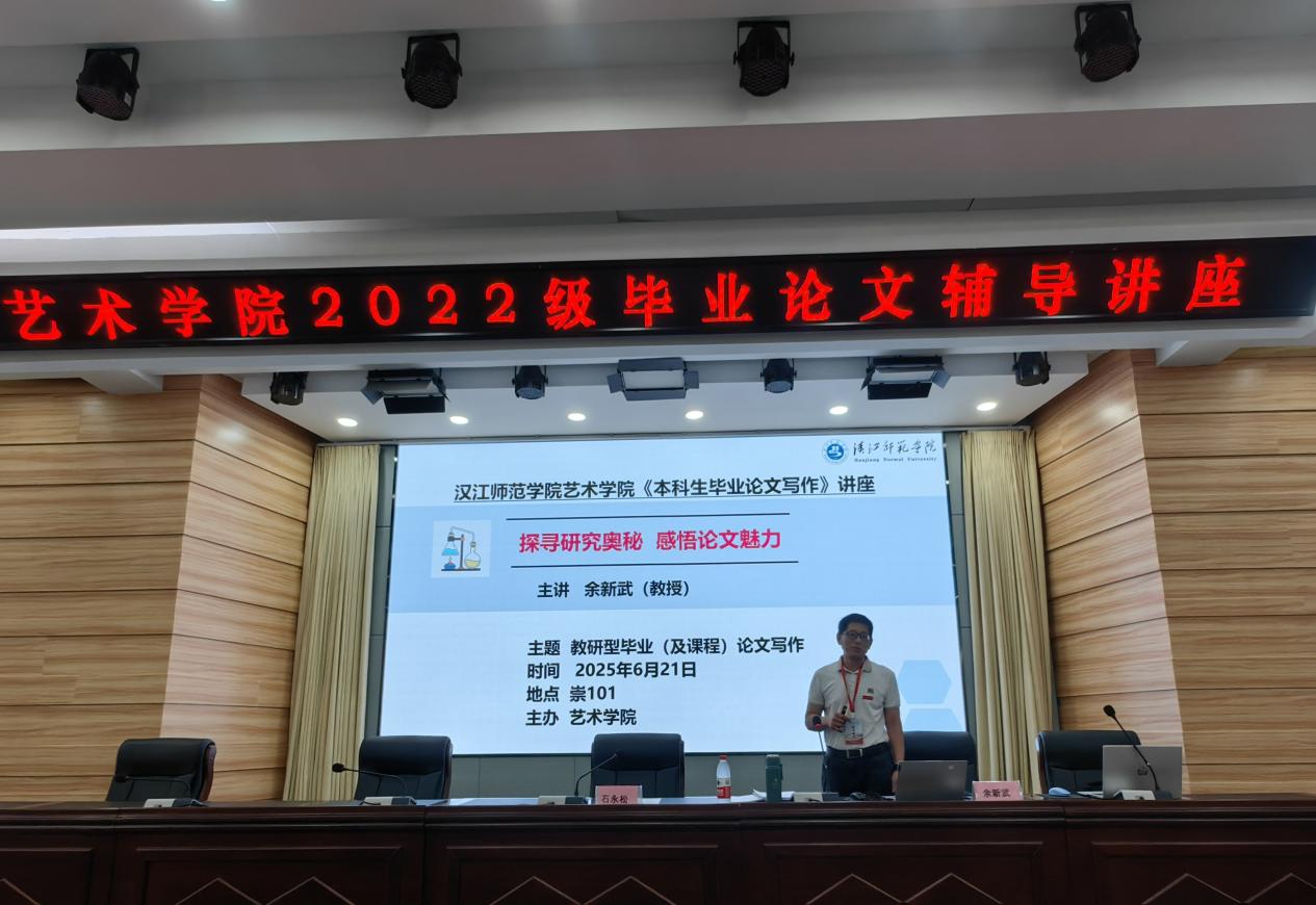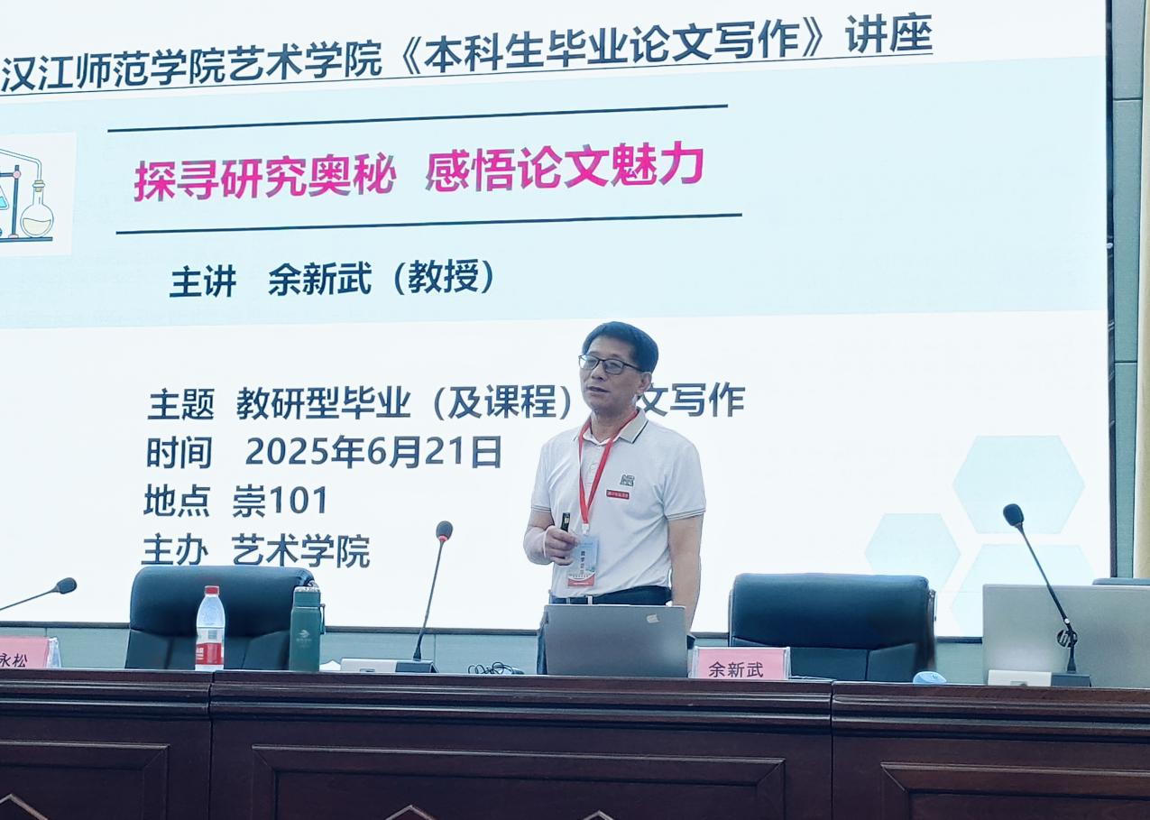 6月21日,公司在崇文楼C101举行毕业论文专题讲座,特邀湖北师范大学余新武教授以《探寻研究奥秘感悟论文美丽》为题讲授本科生毕业论文写作。经理黄新霞、副经理石永松、全院教师和2022级全体员工一起参加了讲座。