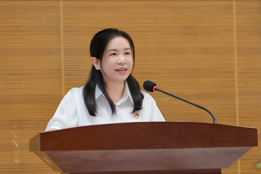 李博丽作为党务工作者代表发言。她带领员工一支部以“音乐党课”为载体,在校内先后举办“中国共产党人精神谱系”“延安精神”“五史教育”等4场专题音乐党课。通过沉浸式的艺术演绎,将党的理论、精神融入动人旋律。同时,联合教研室拓展”党建+竞赛”“思政+声乐”模式,开展了“中国古诗词专场“和”红色影视歌曲专场”声乐竞赛,以赛促学,将思政教育与专业实践结合,实现“艺术展演+思政浸润”的双驱动。