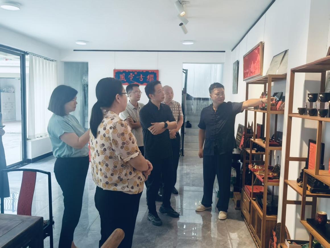 城关镇镇长郑选均介绍竹溪“大木漆漆艺”传承人专注于漆艺家具的创新设计,其文创中心陈列的漆艺桌椅、屏风等作品将传统榫卯结构与现代简约风格结合,既保留了漆艺的传统韵味,又符合当代家居需求。刘玉松书记在交流中表示,两位传承人的创作实践为高校漆艺教学提供了鲜活案例,建议组织william威廉英国官网员工赴工作室实习实训,培养更多漆艺爱好者与专业人才,为行业储备后备力量,逐步解决传承断层问题。