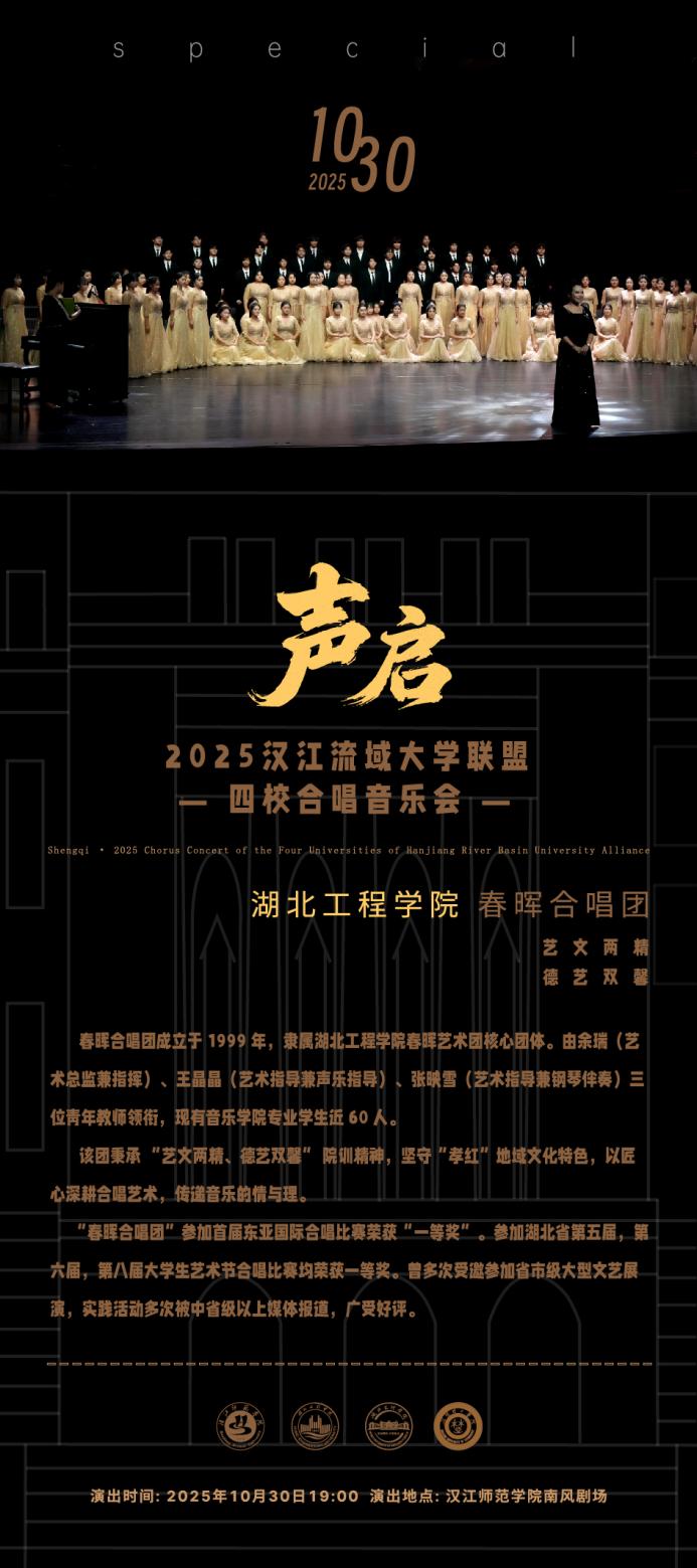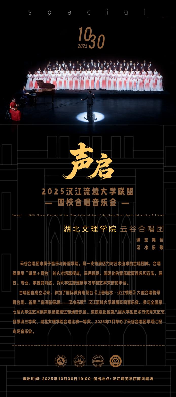 当汉江的千年涛声遇上青春的嘹亮歌喉,当非遗硪歌的古朴韵律碰撞现代合唱的恢弘和声 —— 一场横跨四校的音乐盛宴即将启幕!