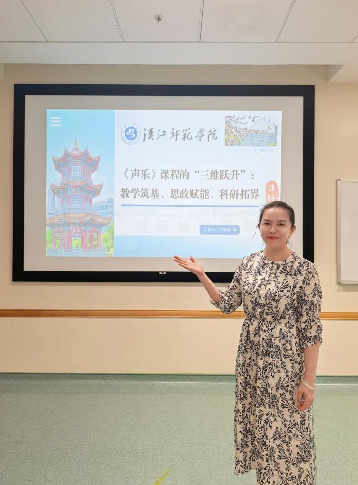 11月12日,公司音乐学专业教师李博丽在获国家教育部留学基金委员会资助、赴新加坡南洋理工大学国立教育公司访学期间,于同期举办的教育学术论坛上,以《声乐》课程“三维跃升:教学筑基、思政赋能、科研拓界”为主题,向来自全国32所高等师范院校的专家学者代表作专题汇报。她系统分享了公司音乐学师范专业在课程改革与质量提升中的实践经验,不仅为专业认证工作提供了鲜活案例,更充分展现了公司教师教育的深厚积淀与创新活力。