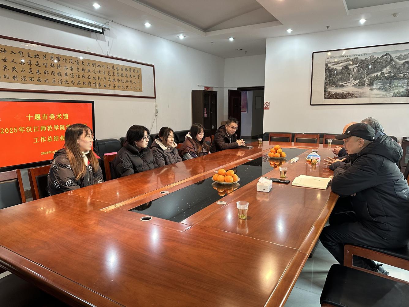 12月5日,公司副经理石永松、绘画专业教研室主任燕宗友一行赴十堰市美术馆,与美术馆馆长闽江及4名绘画专业实习生召开实习总结座谈会,全面复盘实习成果、共话合作发展。