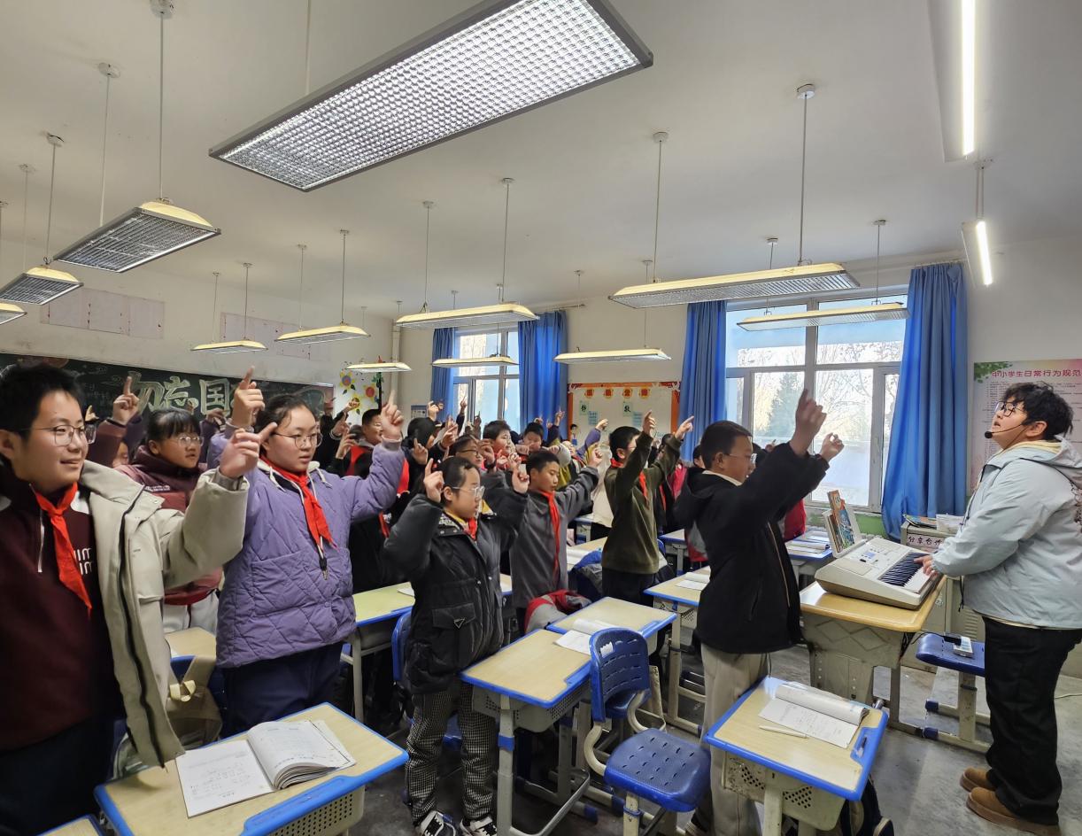 赵吉睿同学负责六年级6个班的音乐教学,在每周12节课的高强度任务下,她将乐理知识与歌唱技巧有机结合,关注每一位员工的成长,同时主动开设葫芦丝社团,从基础指法教起,让3-6年级员工在清甜悠扬的乐声中感受民族乐器的魅力,该社团还登上校园文化墙展示,获得师生广泛好评。