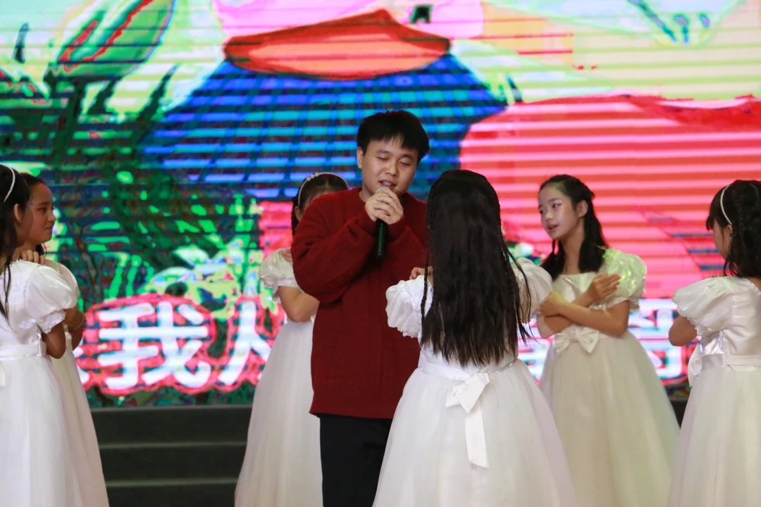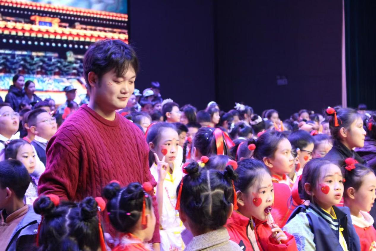 音乐学专业周永康同学担任一年级音乐教师及合唱团指导,针对低年级员工注意力易分散的特点,巧用趣味儿歌、拍手律动、卡通教具开展教学,带领孩子们唱响《娃哈哈》《小星星》,见证着孩子们从羞涩内敛到放声歌唱的蜕变,用旋律守护童真初心。
