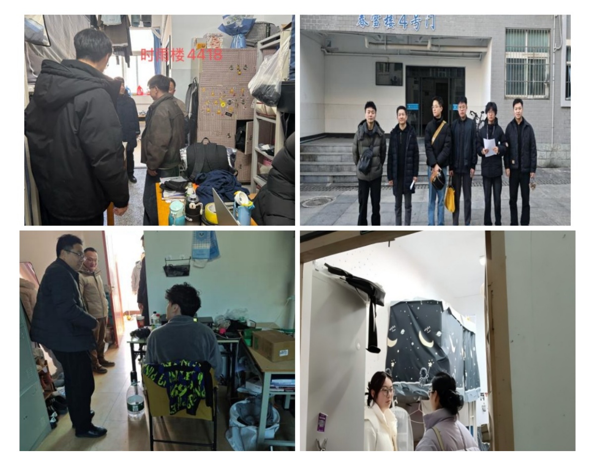 刘飞、崔蕾分别带队到修能楼、夏荷楼、时雨楼、清美楼、春雪楼的员工宿舍,检查宿舍用电安全、卫生等情况,了解留校员工的生活情况、离校时间,叮嘱在宿舍的同学们增强安全意识,合理安排假期生活,保持与辅导员的畅通联系。