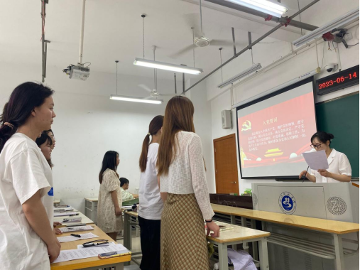 党支部书记党莹作总结发言,她首先对转为正式党员的同志们表示祝贺,同时希望大家不忘初心,严格待己。遵守党的规章制度,养成良好的习惯。支部将及时汇总档案材料,并将同志们的转正报告报上级党组织审批。