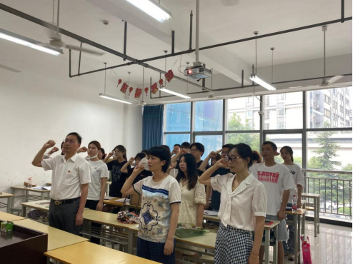 首先,由康平老师带领全体党员重温入党誓词。