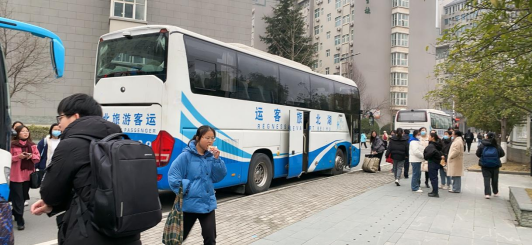 做好实习工作,辅导员组织员工登车前往实习单位进行实习。