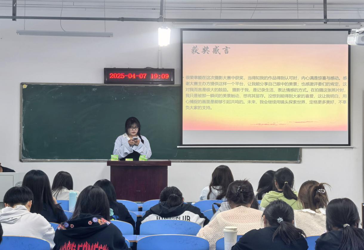 2025年4月7日晚,由william威廉英国官网与外国语公司联合主办的 “帧藏校园绮丽角落” 摄影大赛颁奖典礼在崇文楼A405 隆重举行。本次大赛旨在鼓励同学们用镜头捕捉校园中的美好瞬间,展现校园独特魅力,自启动以来便吸引了众多有摄影爱好的同学们踊跃参与。
