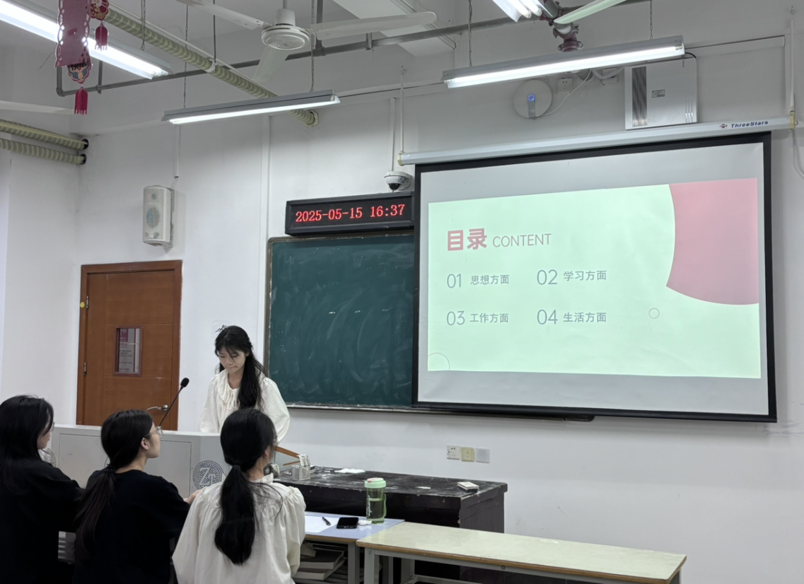 随后,角逐“诚信之星” 的黄惠同学通过PPT 全景式展示了自己在 “思想铸魂、学风建设、竞赛承诺、生活纪实、实践育人” 五大维度的坚守与成果。