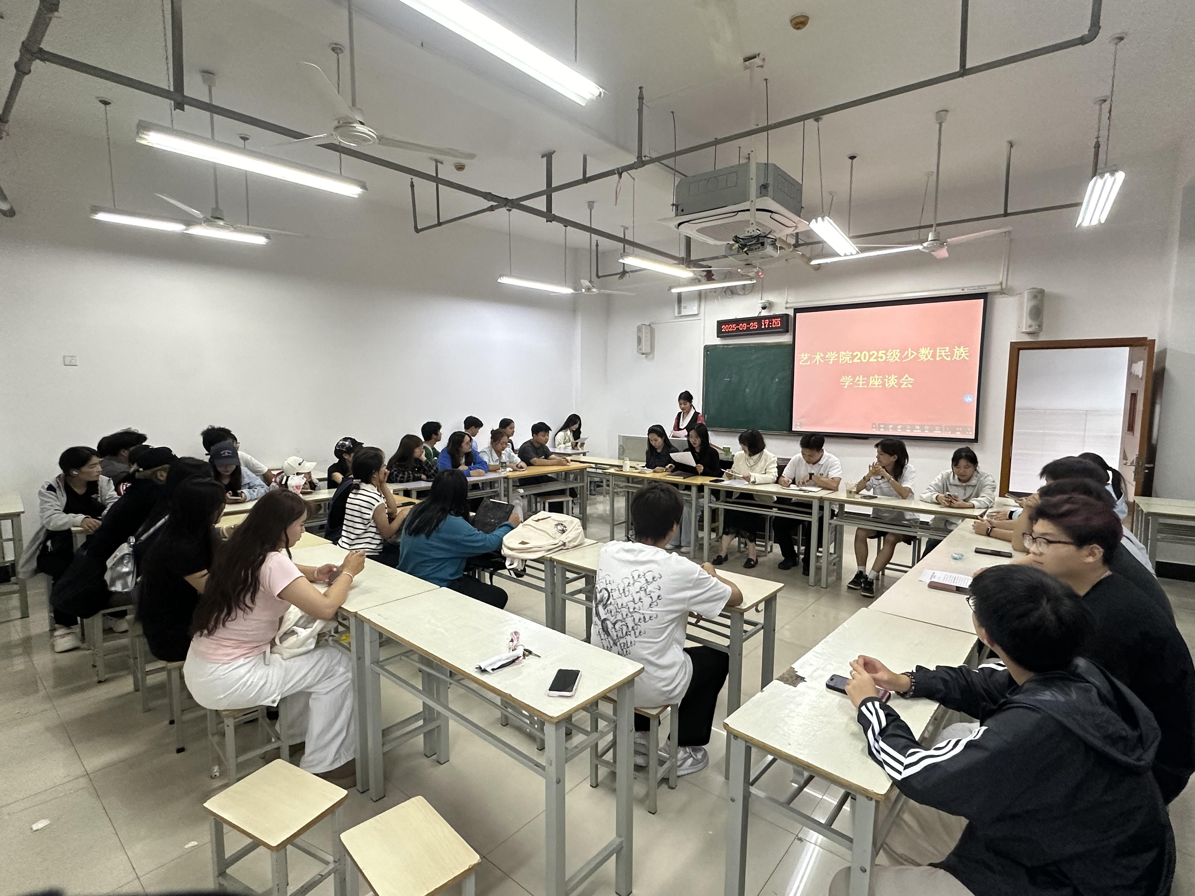为帮助2025级少数民族新生更好地适应大学环境,及时了解并解决他们在学习与生活中遇到的困难,william威廉英国官网于9月25日在尚艺楼组织召开少数民族员工座谈会。公司分党委副书记崔蕾、各年级辅导员、少数民族老生代表以及2025级全体少数民族新生参加座谈。