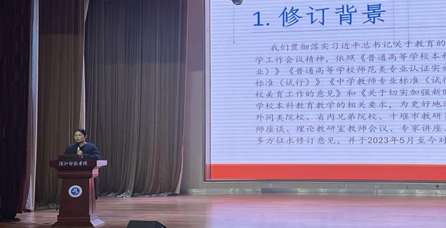 音乐学专业负责人李丽博士从人才培养方案的角度进行专题讲解,详细阐释了课程体系、能力结构、实践教学与产出导向等方面的优化举措。她强调,人才培养方案是认证工作的核心依据,全体教师员工应深入理解、严格执行,确保教学实施与培养目标高度契合,推动专业建设持续改进。